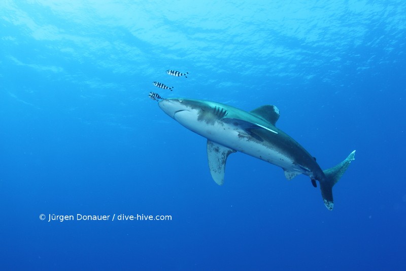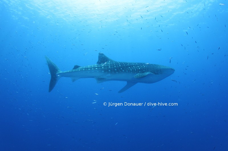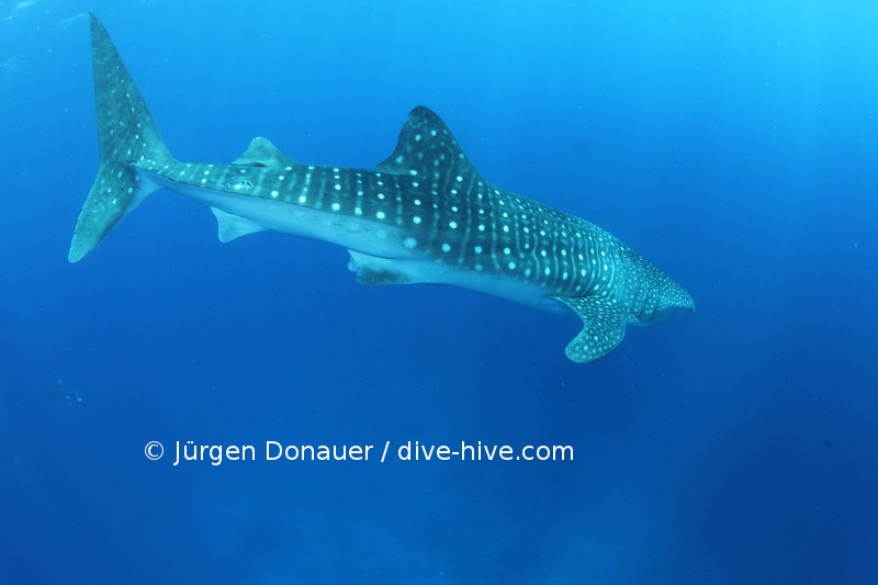 Also noch mal zum Mitschreiben: 3 Weißspitzen Hochseehaie, ein grauer Riffhai, ein Hammerhai und als „kleine“ Zugabe der Walhai am Ende des Tauchgangs. Zurück an Land hab ich mir ernsthaft überlegt, meine Ausrüstung zu verbrennen und nie mehr Tauchen zu gehen – viel besser kann es nicht mehr werden – ich hab mich aber dann doch für Weitertauchen entschieden :). Vielen Dank noch einmal an diving.de und Marlies Lang für einen unvergesslichen Tauchgang. Jeder Mensch sollte so eine Begegnung haben und dann darüber nachdenken, dass man diesen anmutigen Tieren die Flossen für Geldgier abschneidet und dann bei lebendigem Leib wieder in den Ozean wirft. Diese Meeresbewohner und der Ozean selbst brauchen unbedingt Schutz! Und nun viel Spaß mit den restlichen Bildern.