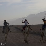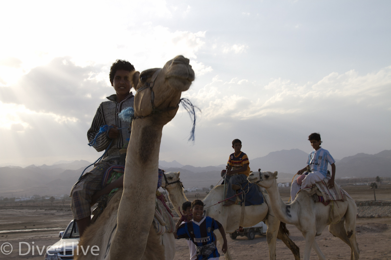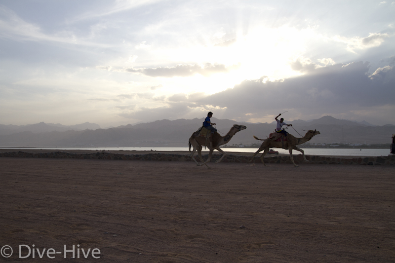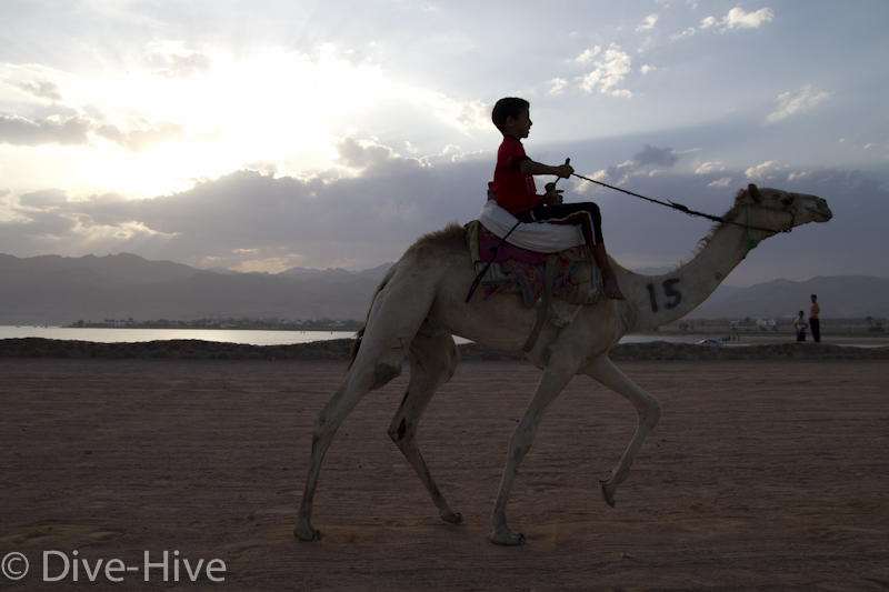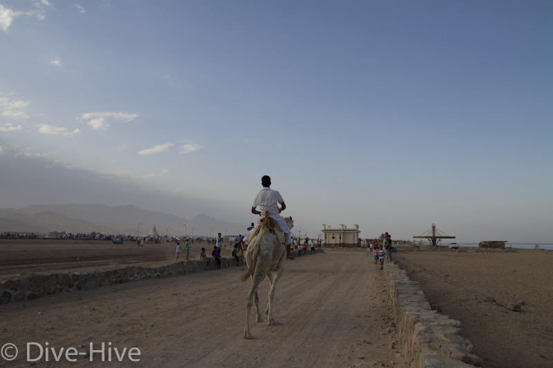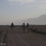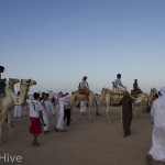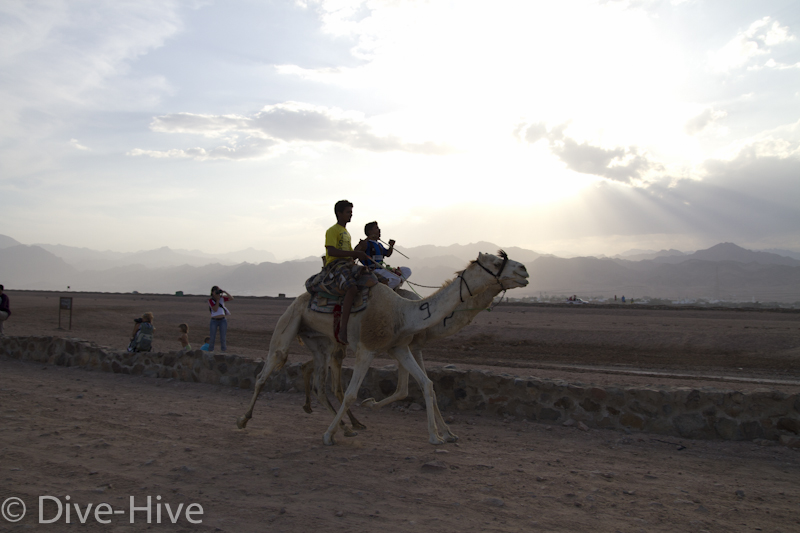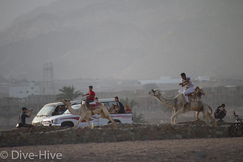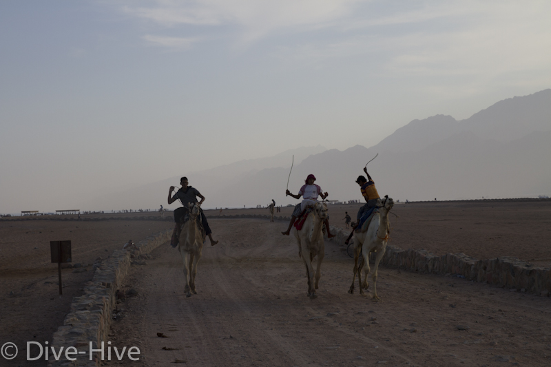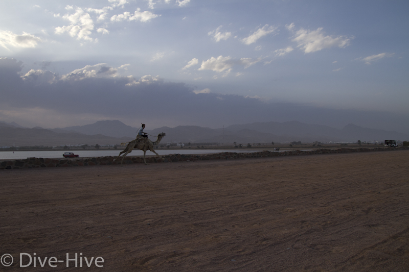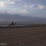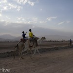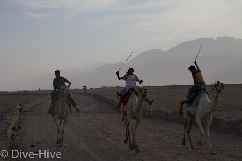Somit haben wir kein Bild vom Gewinner. Wir haben uns irgendwo in der Mitte postiert und von da Bilder geschossen. Es iest sich wie eine kleine organisatorische Katastrophe, aber es war ganz das Gegenteil. Viele Leute fanden sich ein und es war ein großer Spaß. Im Endeffekt war der Gewinner nicht das Wichtigste – Dahab hat gewonnen – das ist sicher. Genießt einfach die Bilder. Sie sind etwas dunkel geworden, weil das Rennen spät Nachmittags stattfand. Das war sicher kein nachteil für die Renn-Kamele. Während des Tages ist es einfach zu heiß. Die Sonne beschloss dann noch genau zum richtigen Zeitpunkt entschlossen, sich hinter ein paar Wolken zu verstecken.