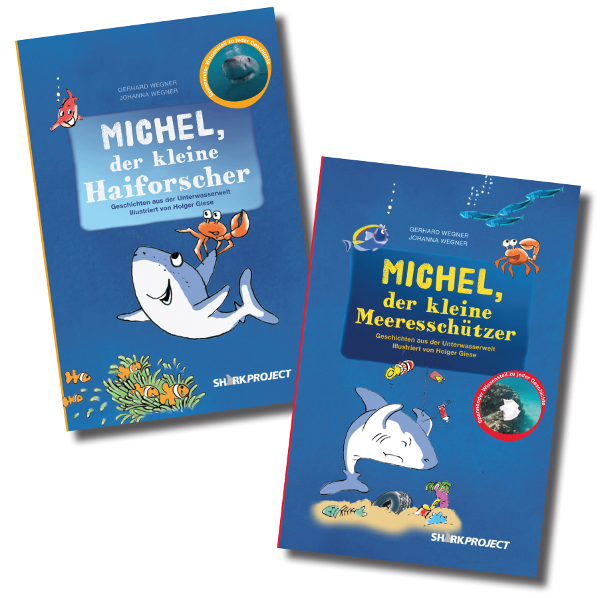 Die beiden liebevoll illustrierten Michel-Bücher sind für Haifans von 3-99 Jahren gedacht. Ab dem 30.10.2011 gibt es die Bücher für jeweils € 14,50 zur Sofortlieferung im SHARKPROJECT-Shop und bei AMAZON oder auf Bestellung im normalen Buchhandel.