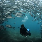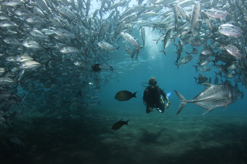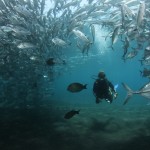 Unsere ersten Tauchgänge in Blai, Indonesien. Gestern waren wir beim Wrack Liberty und ein riesiger Schwarm Jacks hat uns beglückt.