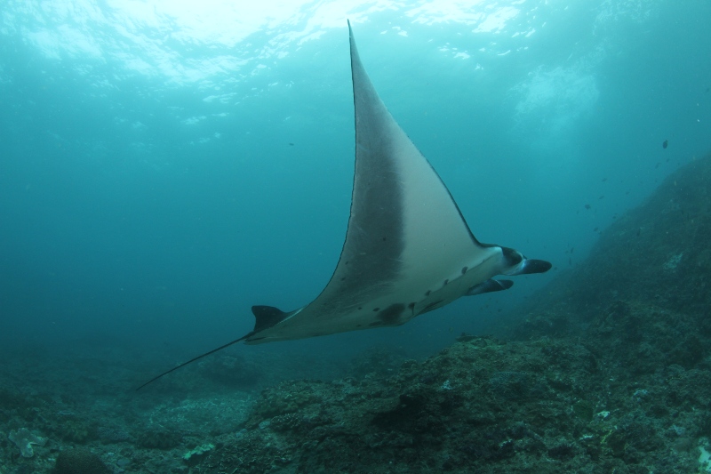 Heute ging es zu einem Tauchplatz, der sich Manta Point nennt – der seinen Namen wirklich verdient. Maximale Tauchtiefe war nur zwölf Meter – dort haben uns zwölf Mantas für eine ganze Weile umkreist. Bilder sagen ja bekanntlich mehr als 1000 Worte …