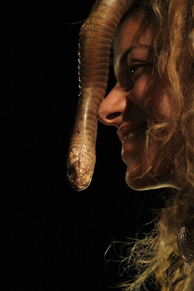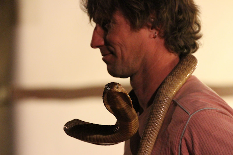 Der Schlangenbeschwörer war am Abend im Mirage Village zu Gast. Die Freiwilligen hatten Mut!